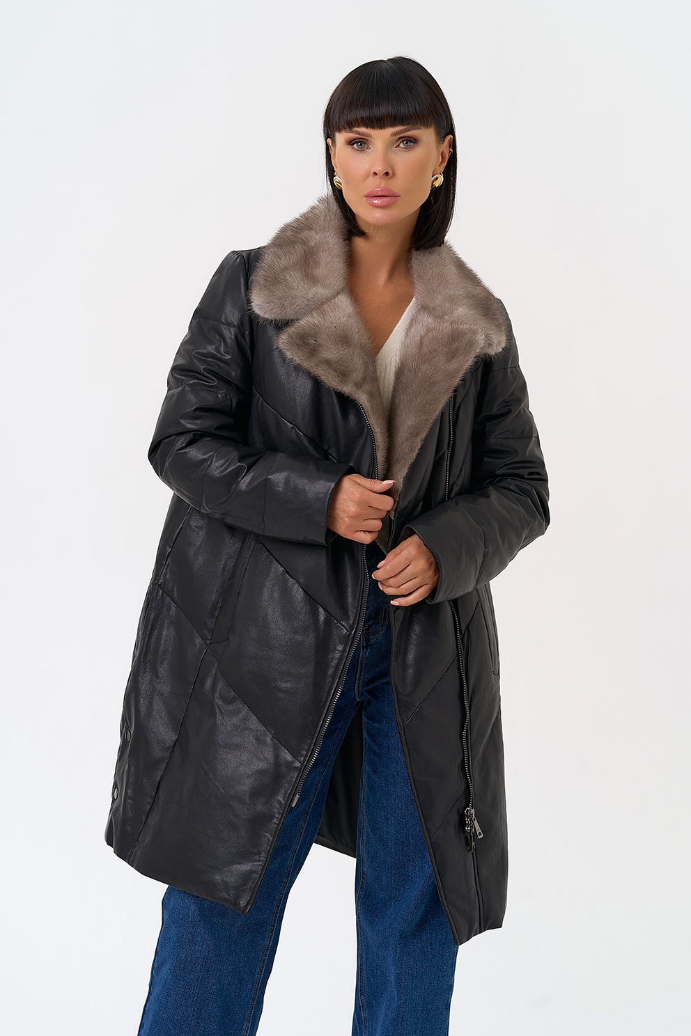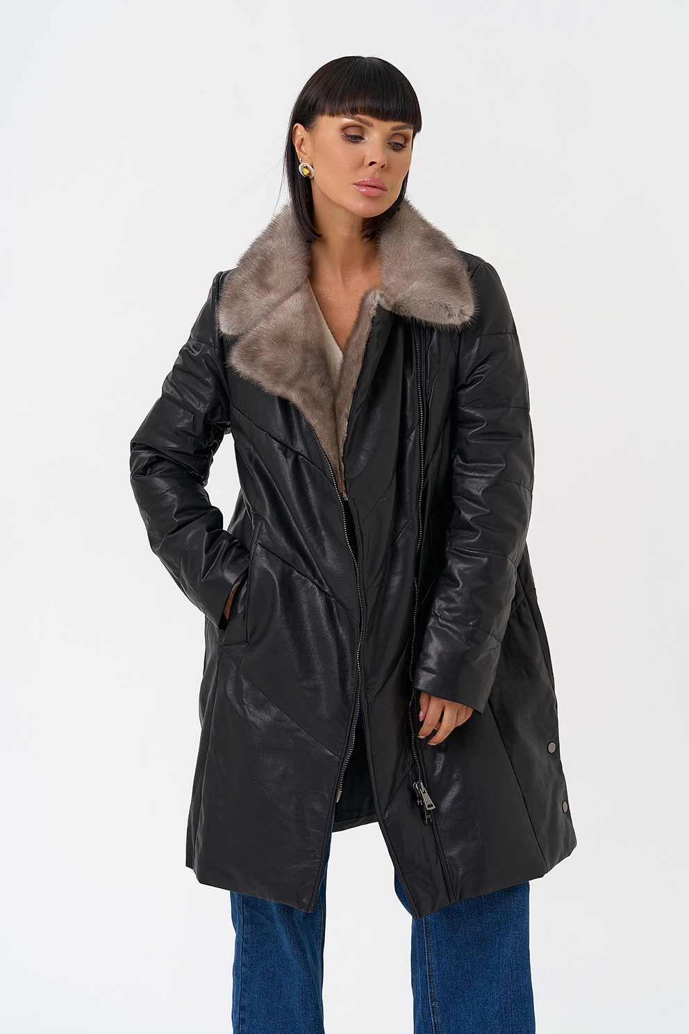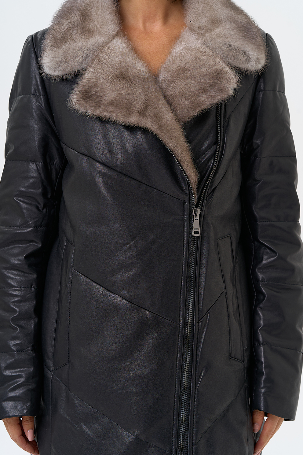 Отделка воротника - норка, цвет серый
