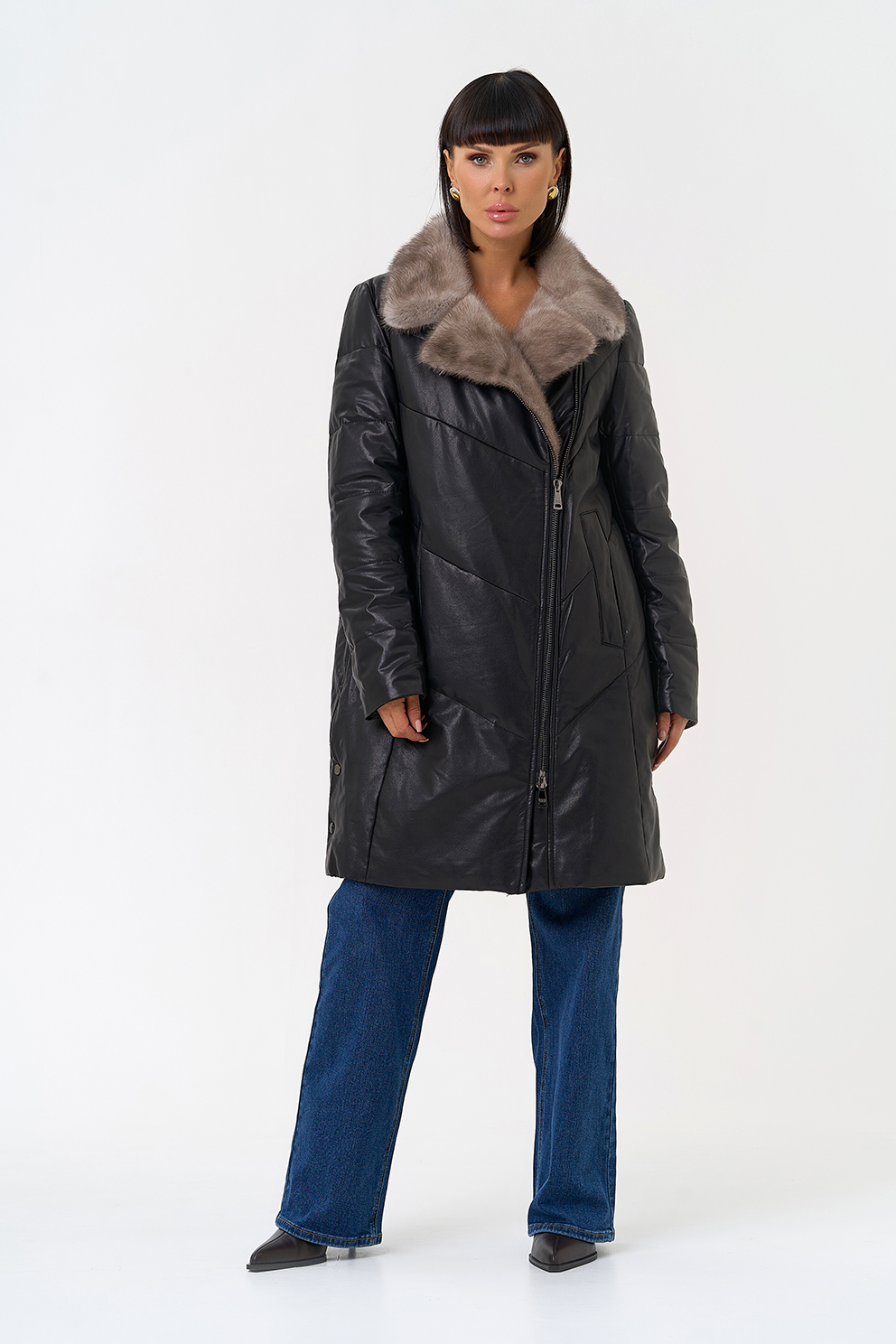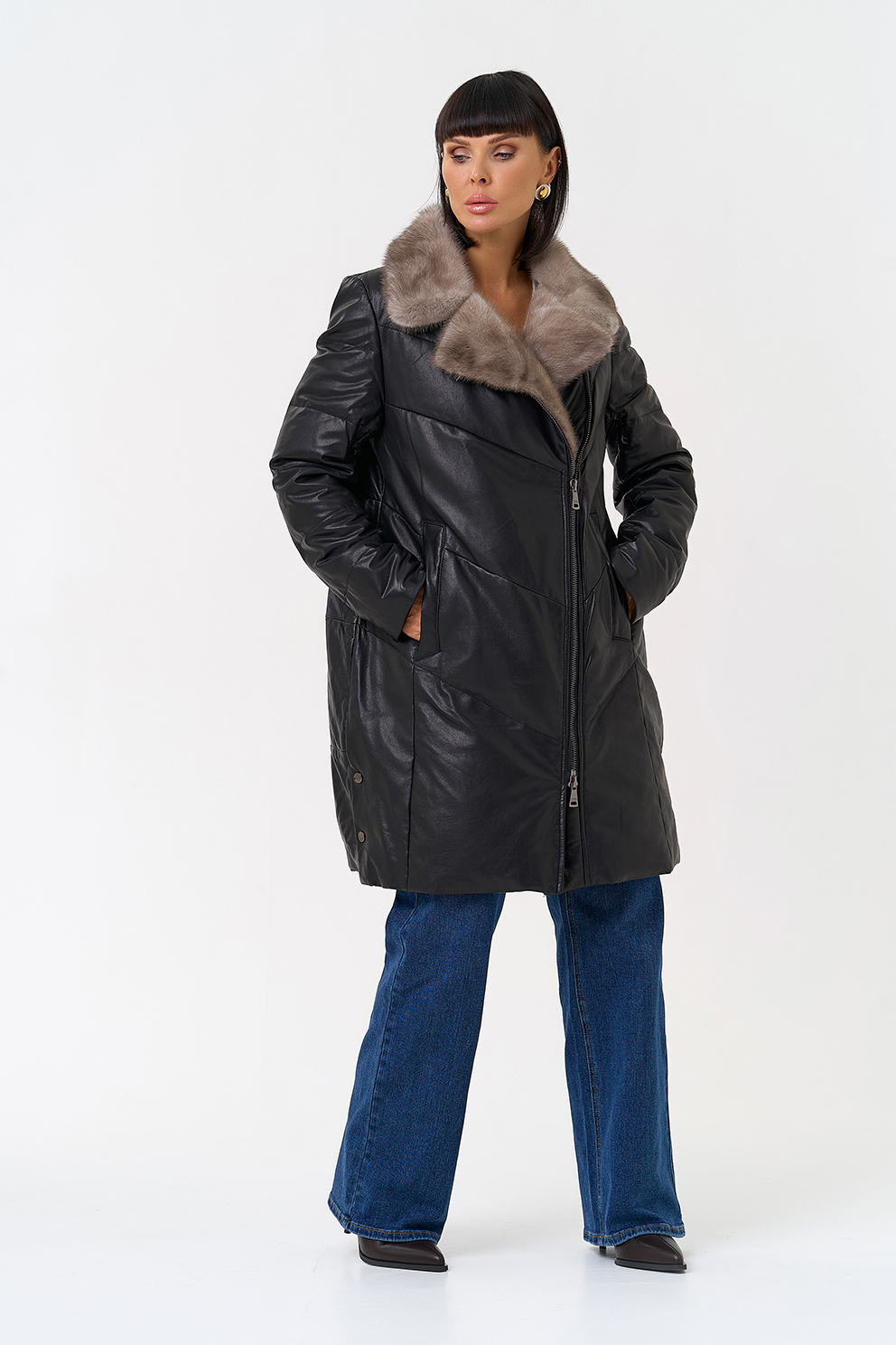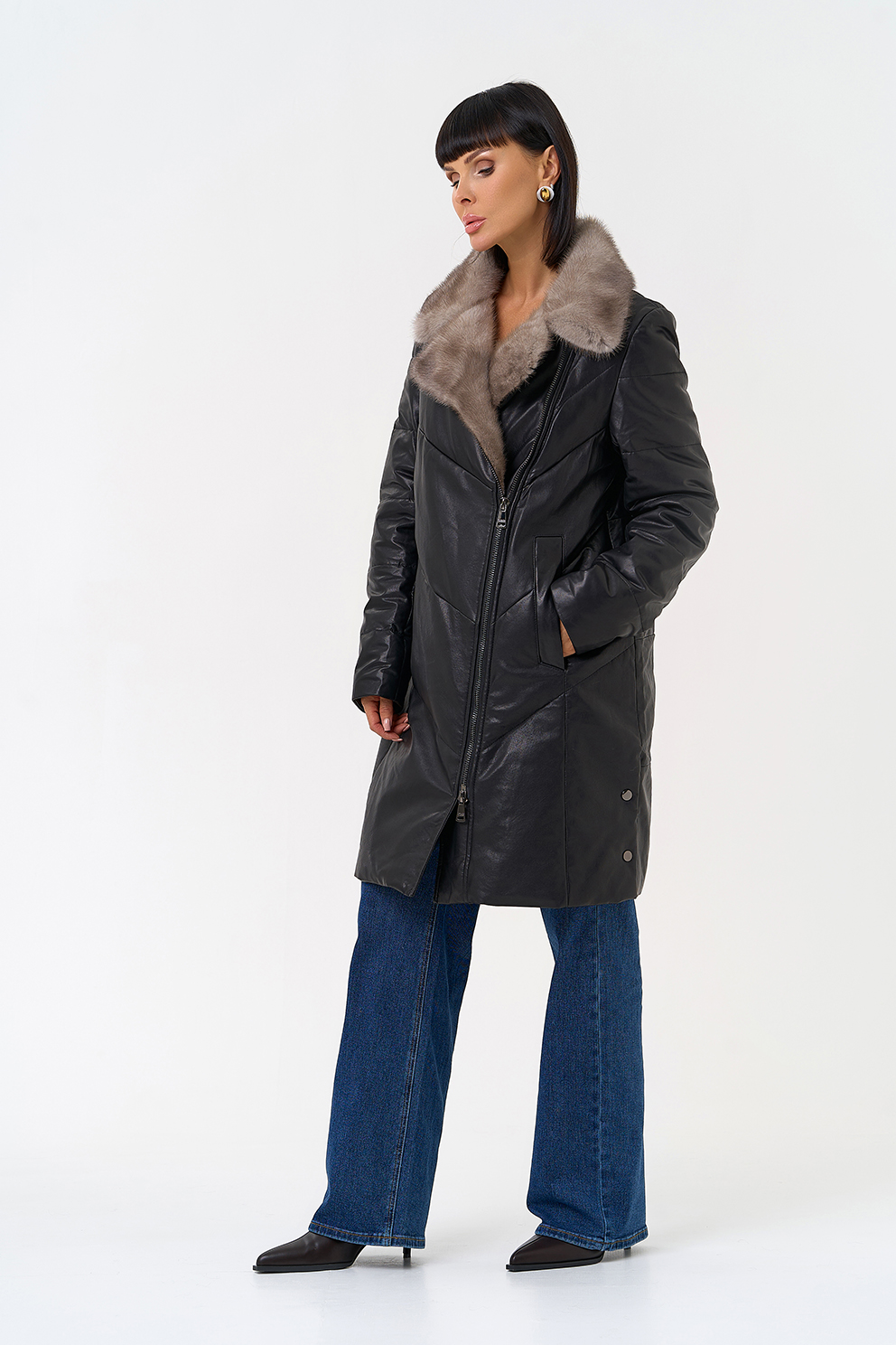 Отделка воротника - норка, цвет серый