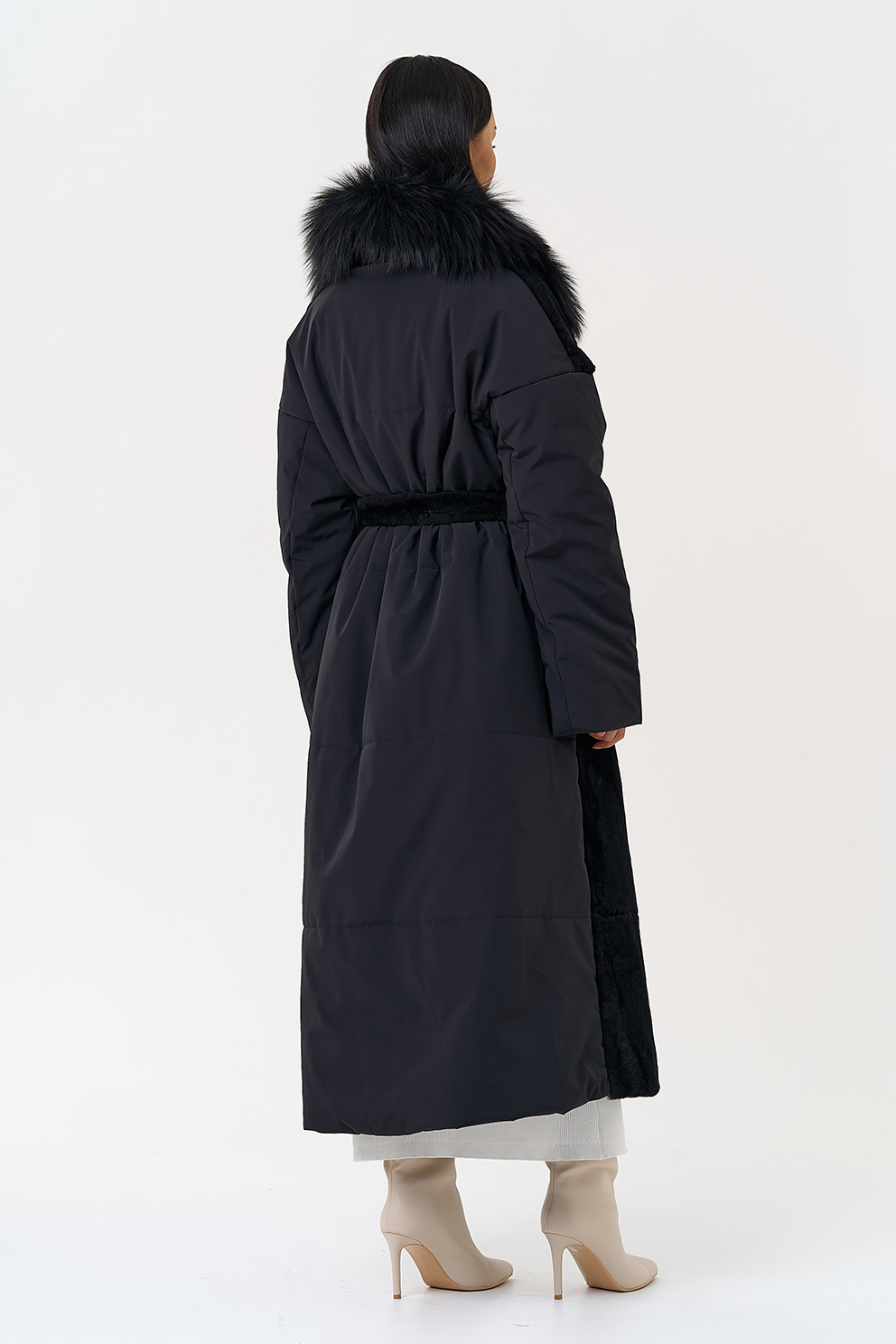 Вид застежки - кнопки, пояс из меха овчины