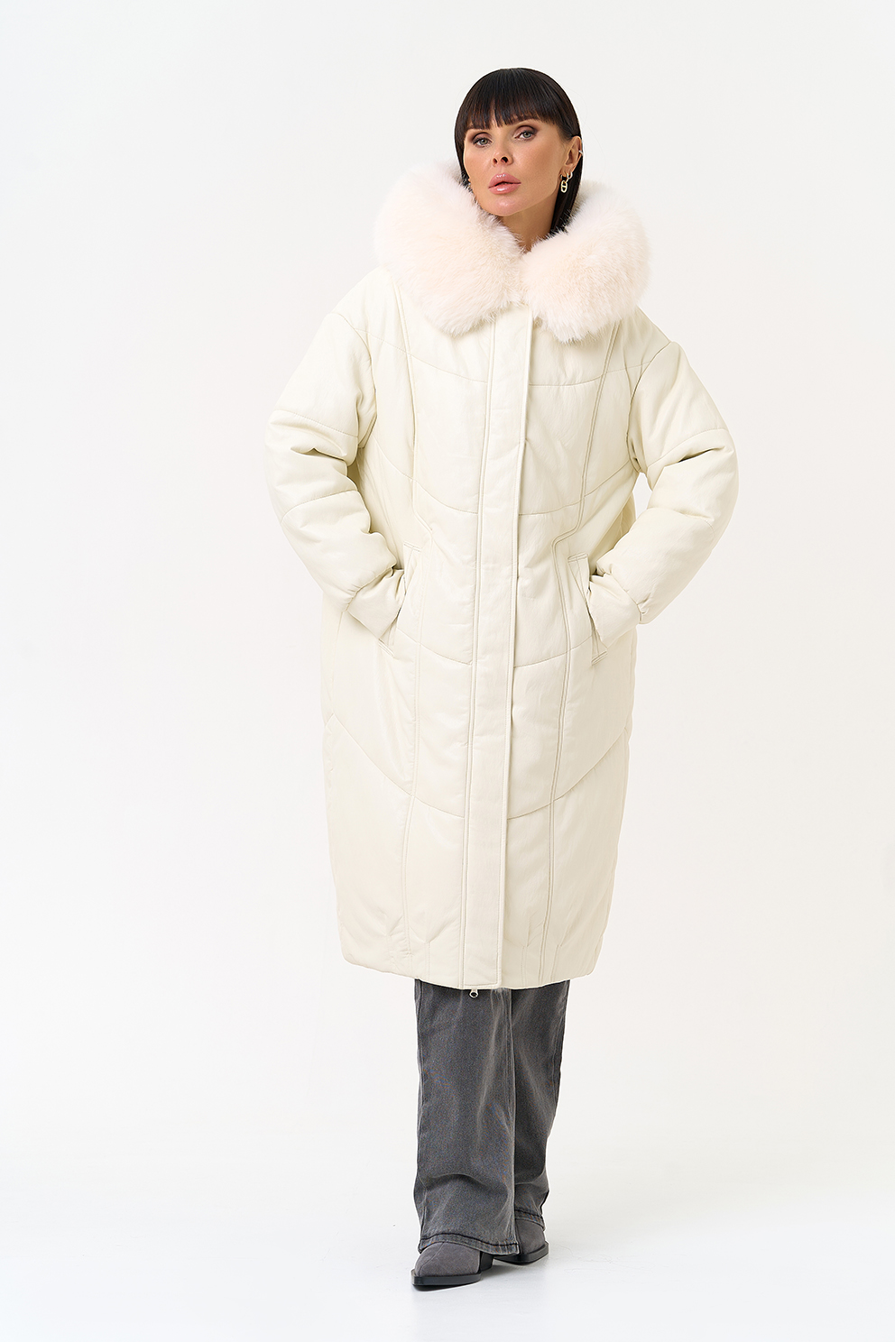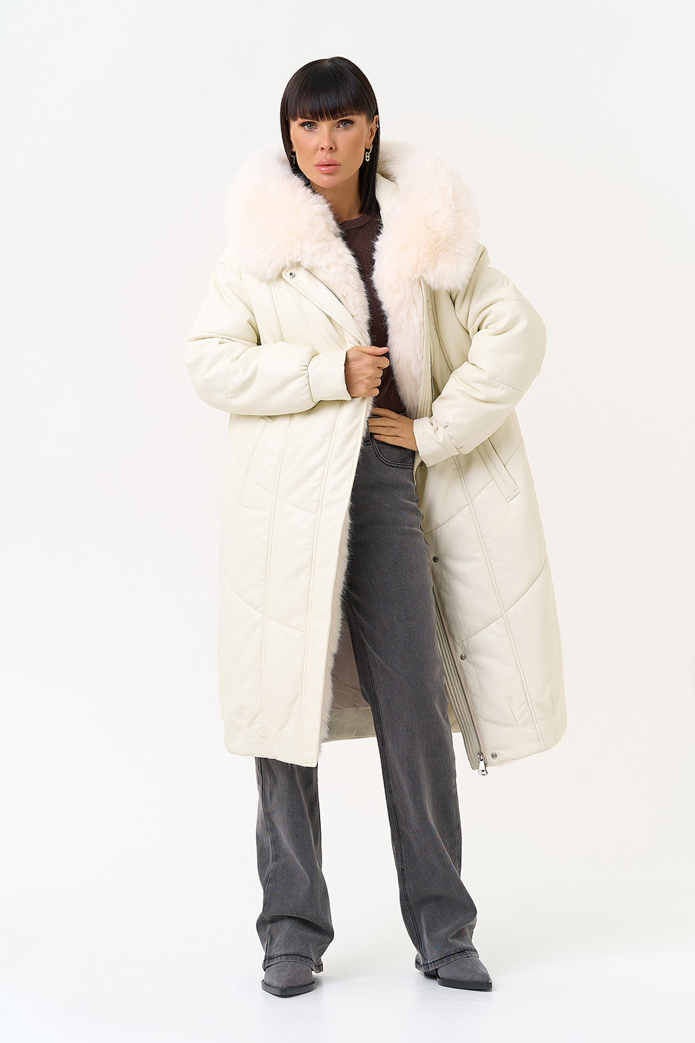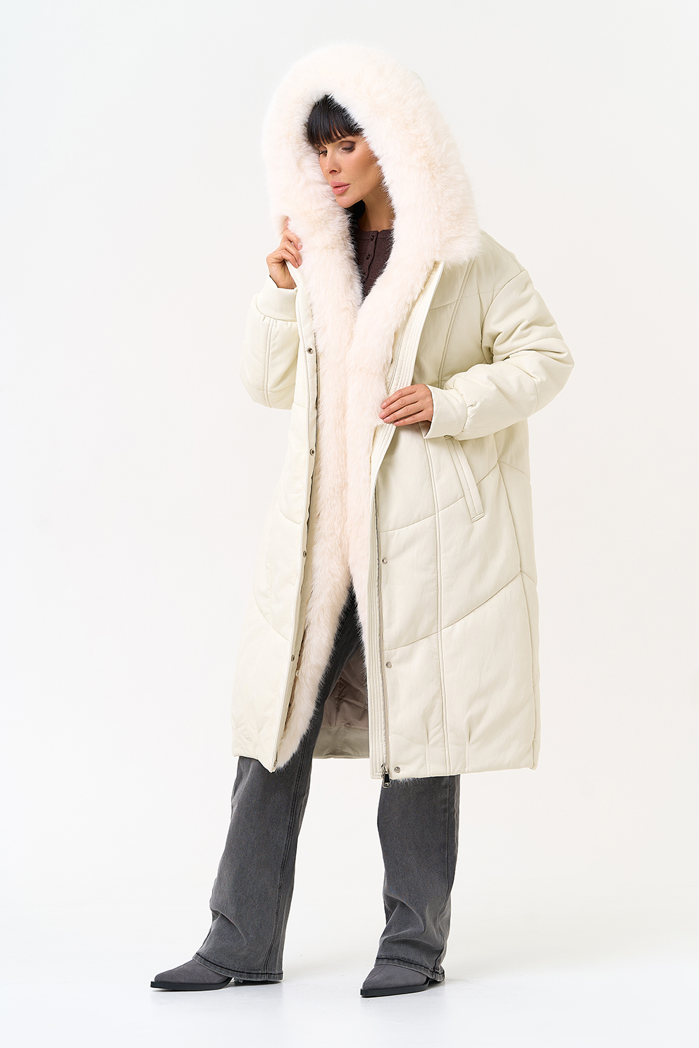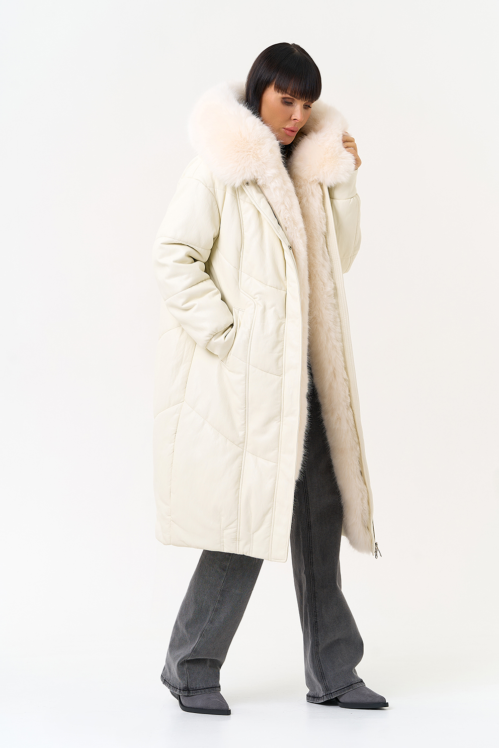 Отделка воротника - эко мех, цвет белый