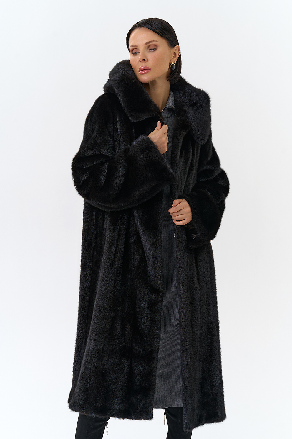 Шуба из норки с капюшоном